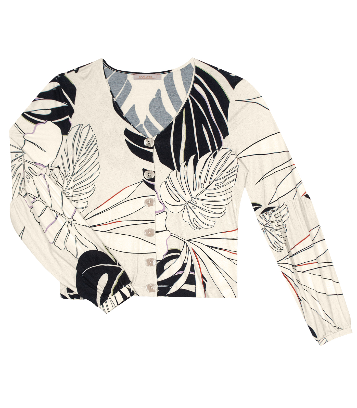 Blusa de Viscose Creponada Manga Longa Off Witte com Preto – ModaLu
