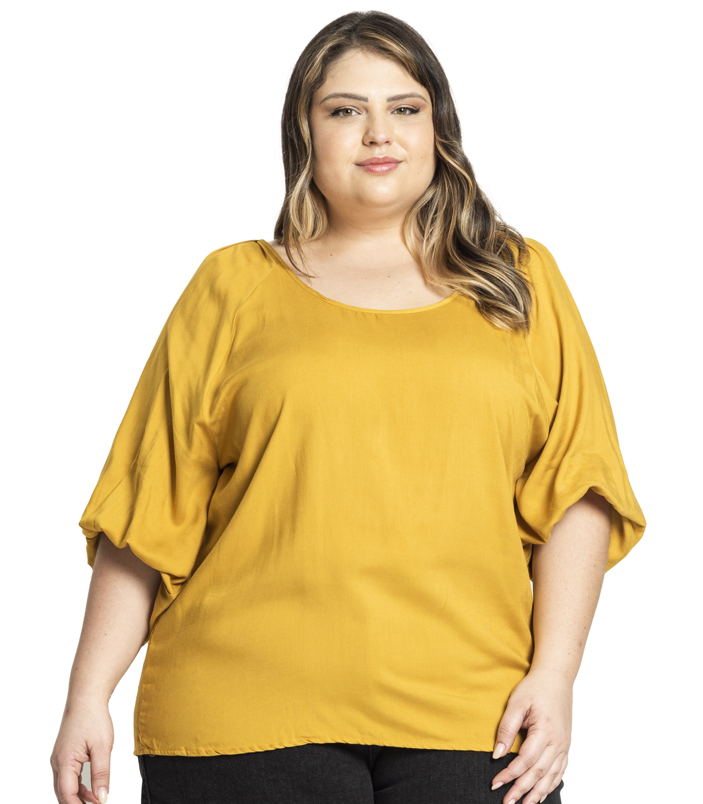 Blusa de Viscose Sarjada Manga 7/8 Golden Spice – ModaLu