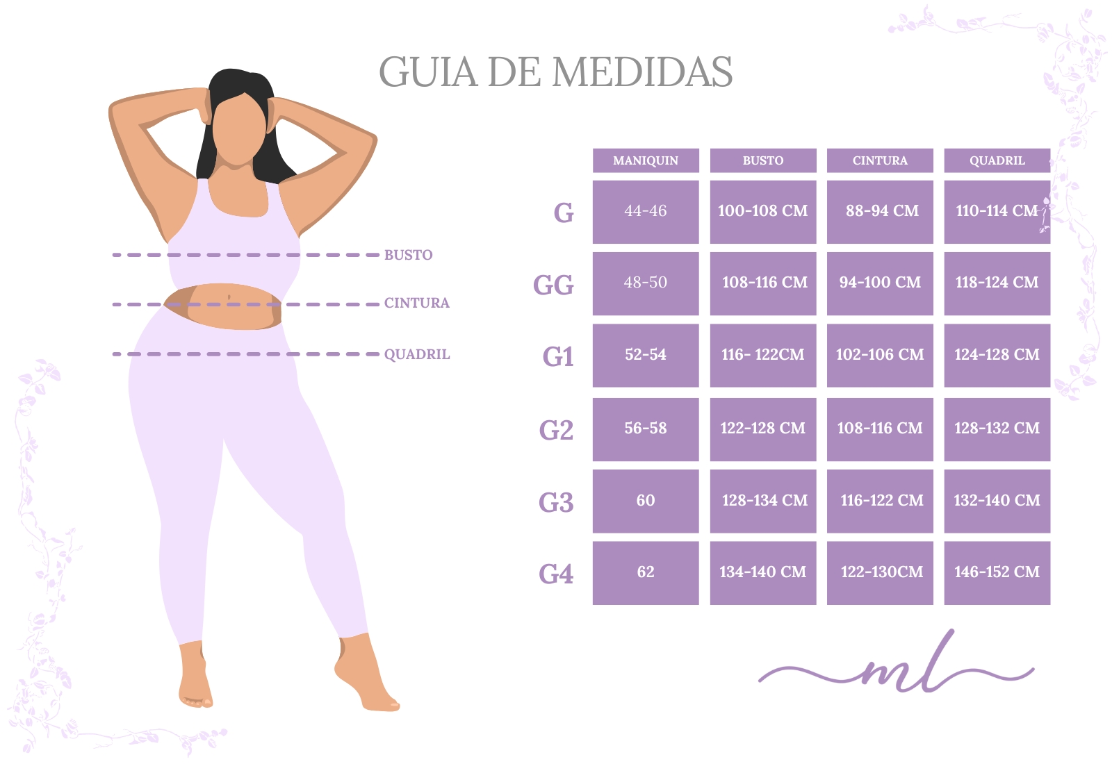 Confira as medidas para ter certeza que o tamanho corresponde ao seu corpo. Em caso de dúvidas, entre em contato conosco.
