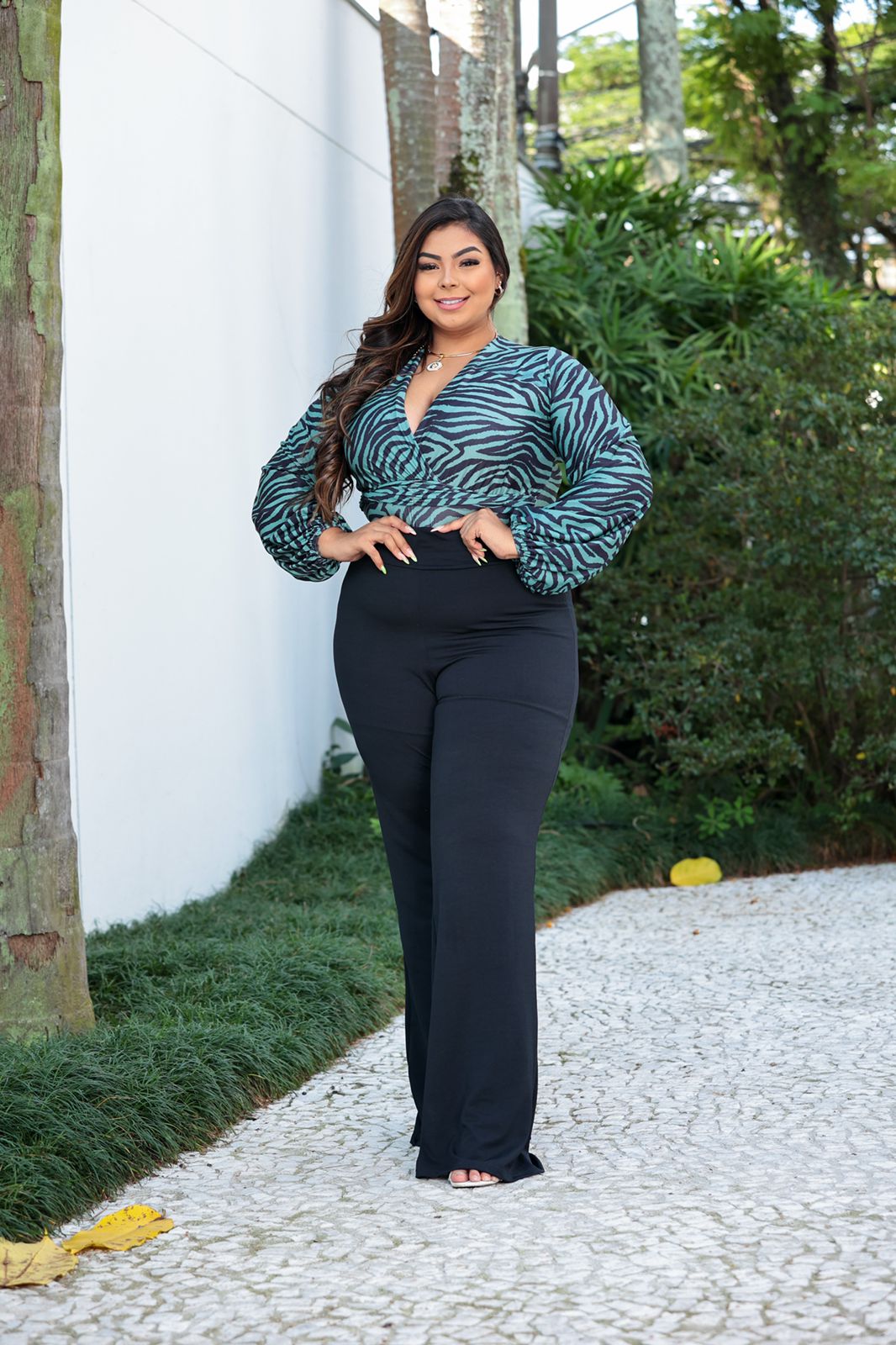 O Body de Malha Viscose Manga Longa Transpassado Verde Preto é uma peça elegante com estampa moderna e confortável, proporcionando um visual sofisticado. Com malha de viscose, manga longa e transpassado, é ideal para quem busca conforto e estilo.
