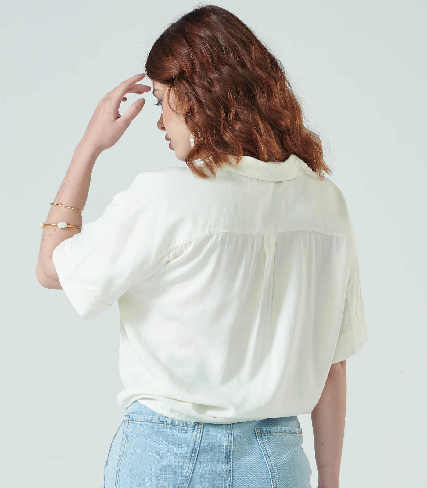O linho é um tecido leve e fresco que é perfeito para os dias quentes. Além disso, sua textura natural e sua aparência rústica adicionam um toque único e atemporal à peça. A manga curta e a modelagem solta dão a essa camisa uma aparência confortável e descontraída.
