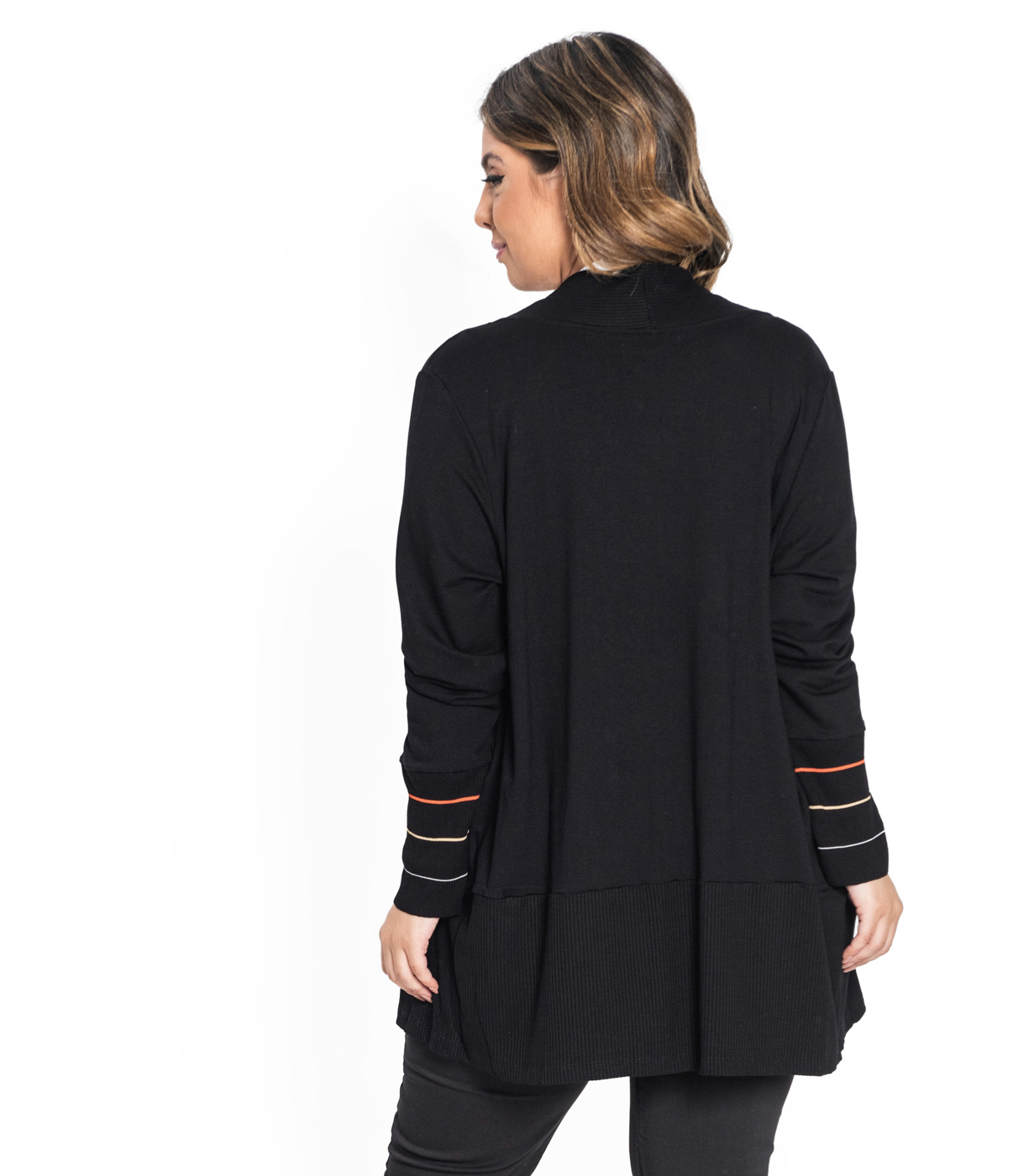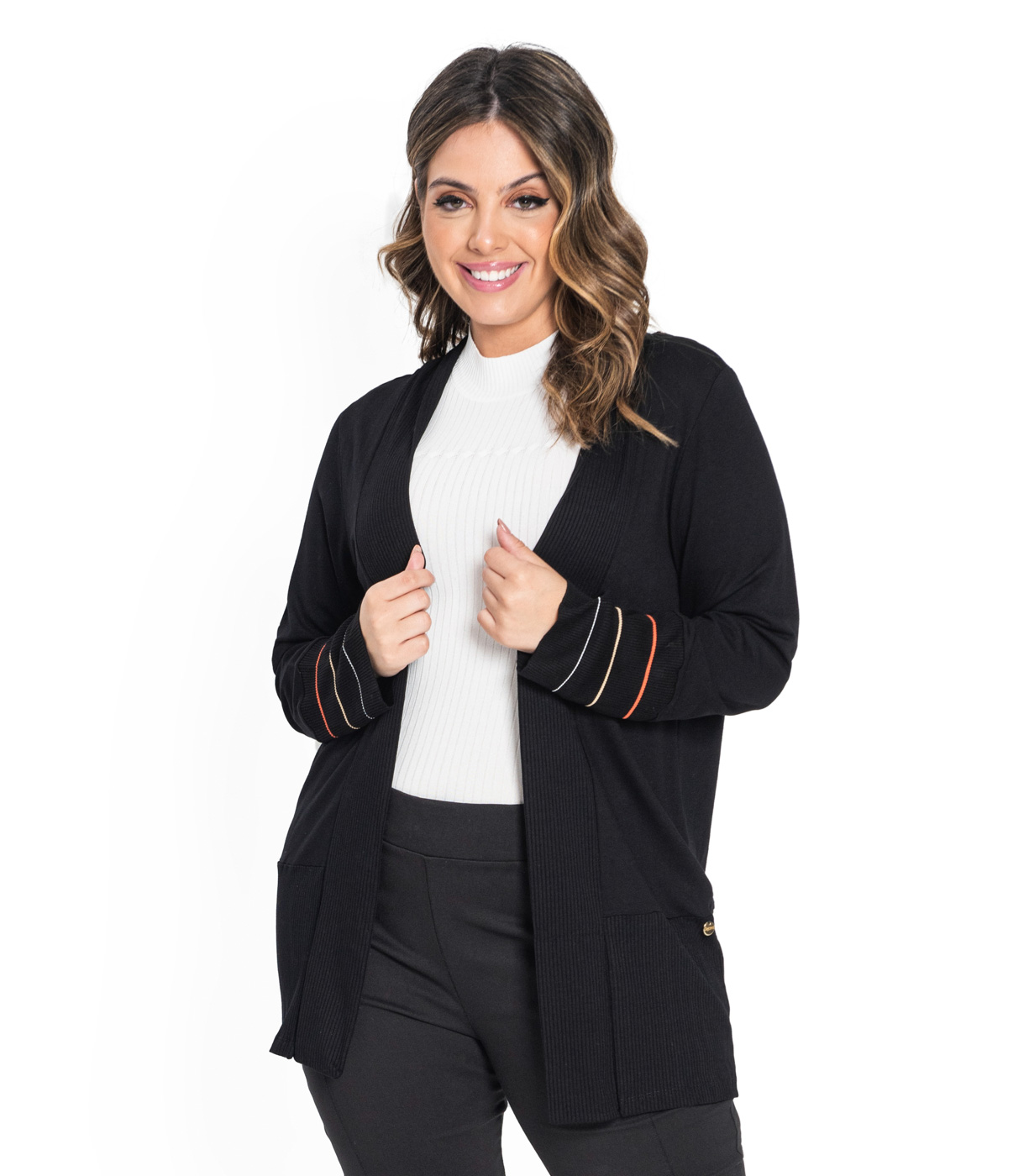 Adquira agora mesmo o seu Cardigan de Molecotton de Viscose Ribana Canelada Manga Longa Preto e sinta-se elegante, confortável e quente em todas as ocasiões.