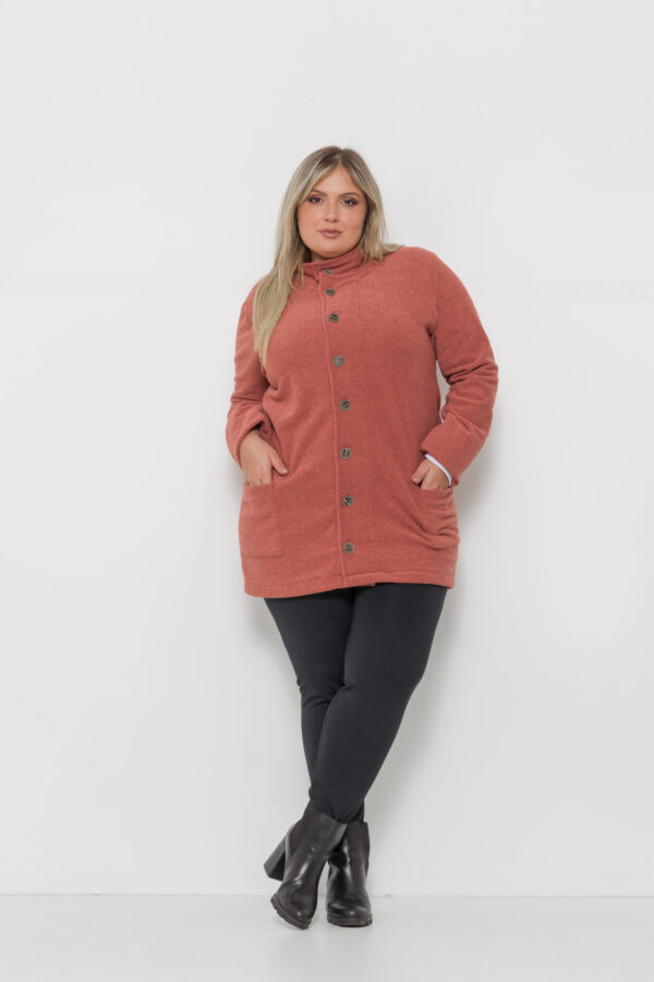 Casaco em Boucle Malha Mescla Manga Longa Botões Terracota – ModaLu