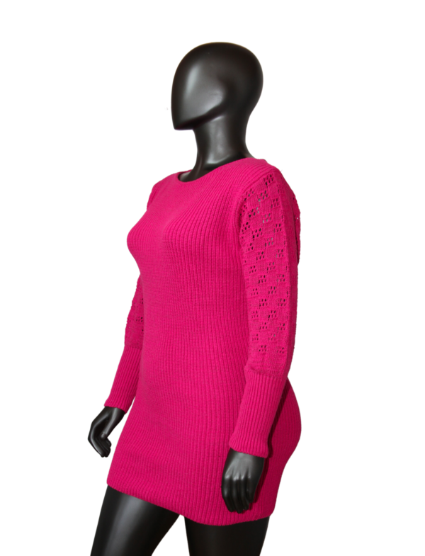 Adquira esse vestido e adicione um toque de feminilidade e estilo ao seu guarda-roupa. O Vestido em Tricô com Mangas Bufantes e Gola Canoa na cor Rosa Pink é uma peça única que destaca a sua personalidade. Não perca a oportunidade de se expressar com confiança e elegância. Peça o seu hoje mesmo e desfrute do encanto e do conforto desse vestido em tricô exclusivo.